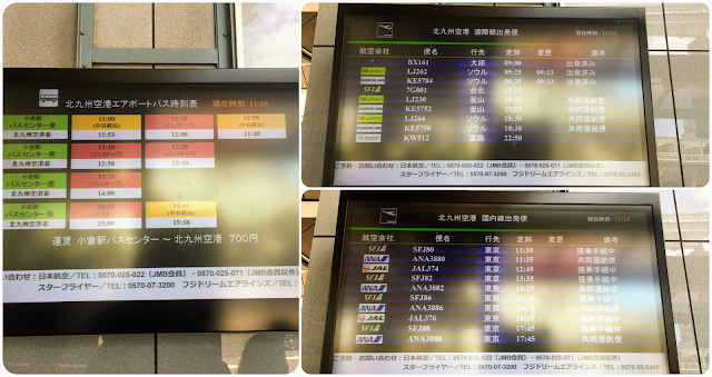 小倉站到機場的客運將近四十班,公車站的顯示器除了有機場巴士時刻表,還有班機時刻表。