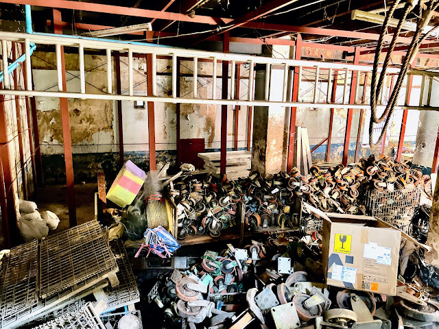 從門口望進去,跟本就是廢鐵工場,現地的光線來自門口的照射,所以實際上比照片黯淡,空氣中的鐵鏽、重油味更是撲鼻而來。