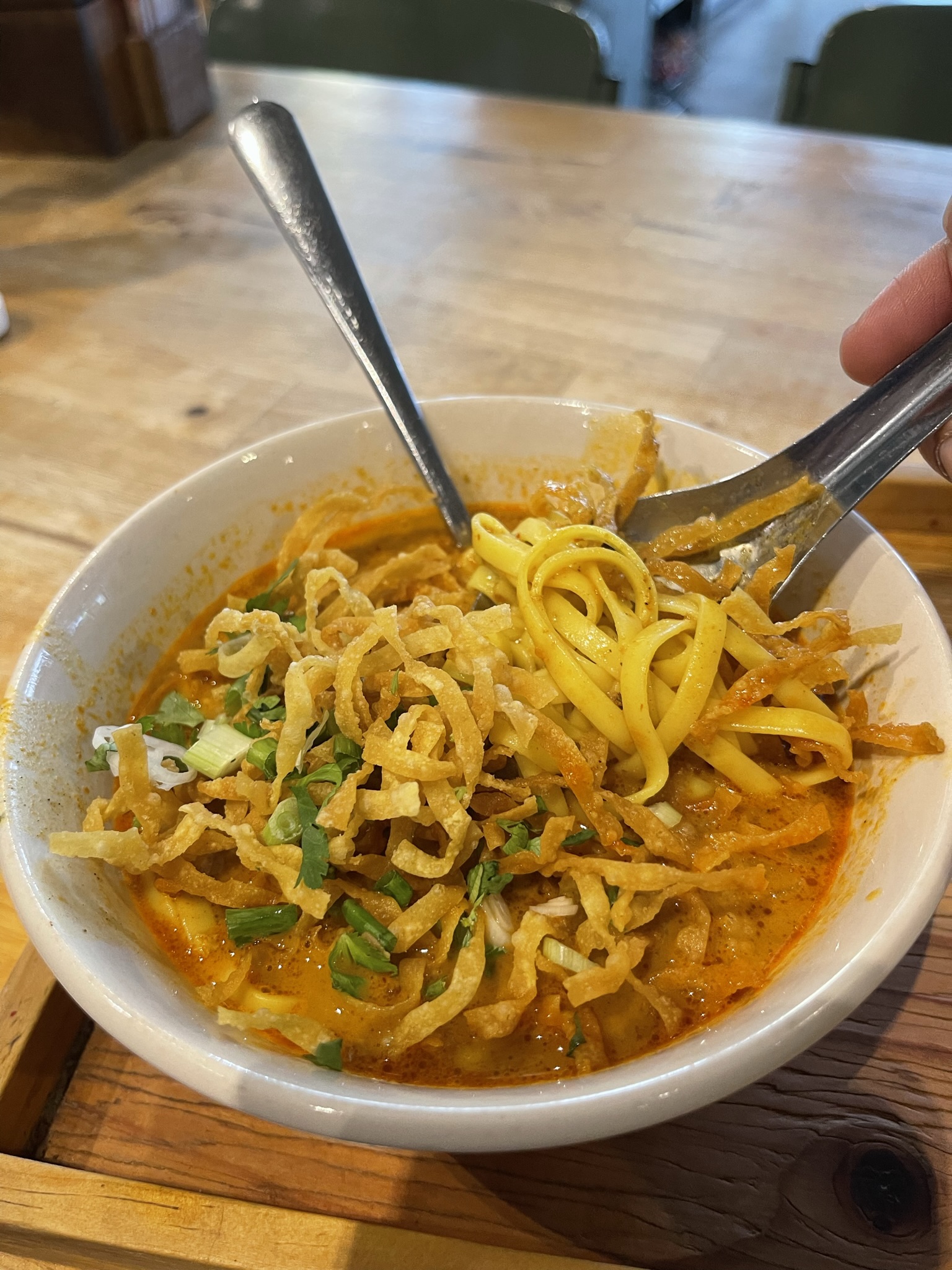 招牌咖哩麵Khao soi跟豬肉拼盤。