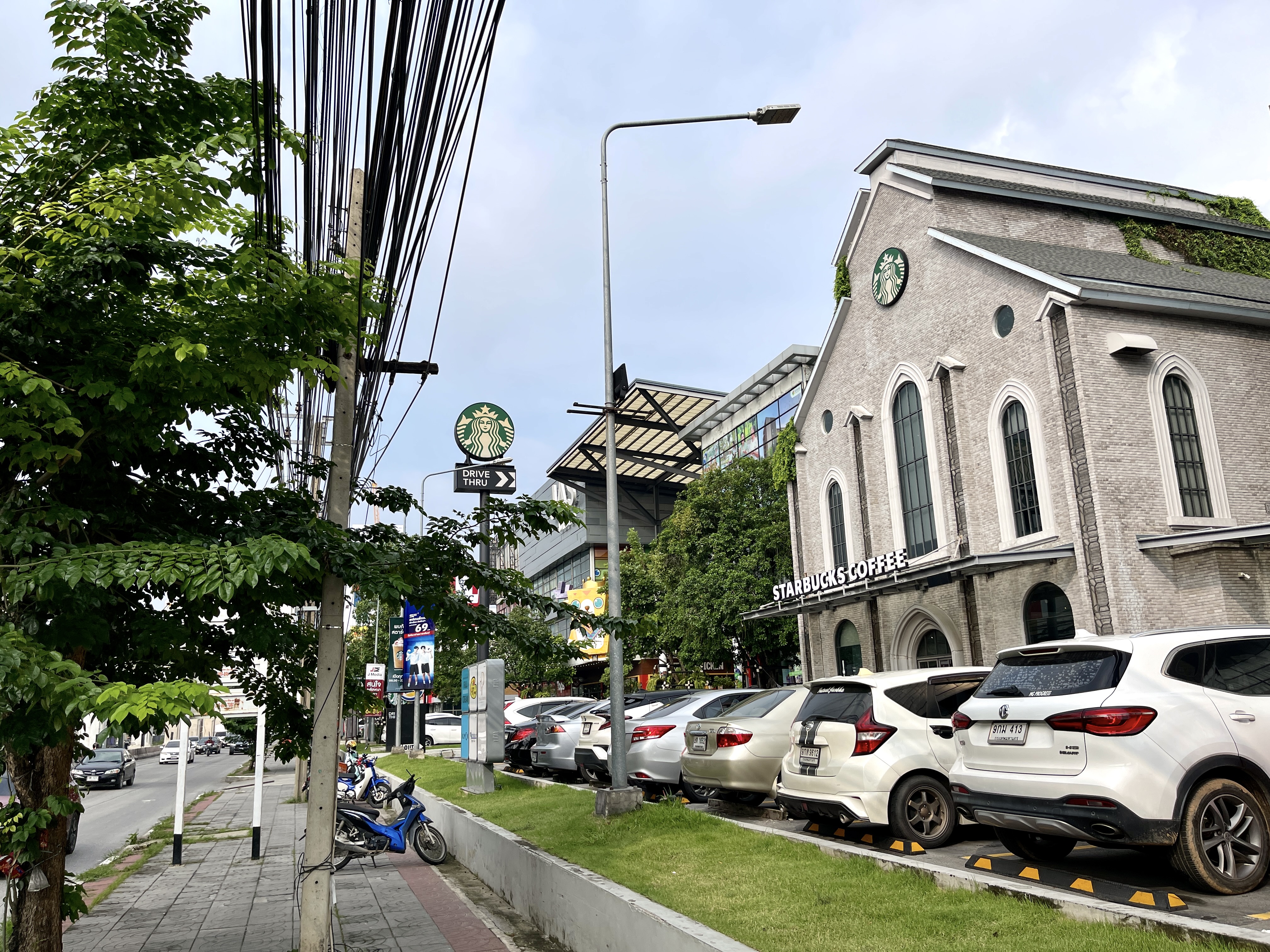 疫情前就知道曼谷近郊有間星巴克門市外觀像教堂,但因為它位在郊區且交通不便,不過隨著MRT黃線2023年7月開通,於是利用機會抽空前往順道體驗甫營運的單軌鐵路。
