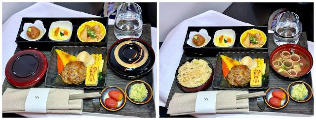 第一次搭星宇的日本線,比我想像中好很多,光是餐點端上桌就是視覺饗宴,而且兩種日式餐點,前菜、湯、飯及甜點竟然都不同,另外還有專屬日本線的清酒,真心覺得比東南亞線的餐點好很多,搭一次後真的會上癮。